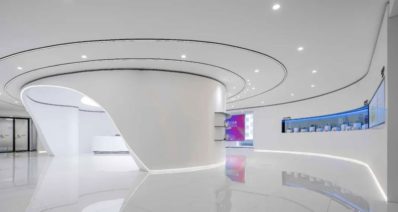 从踏入门厅开始,就划定了宇宙视界,大厅以天花曲线灯带统筹整体空间关系,异形包裹的空间内,椭圆形发光灯膜在营造时空感的同时辅助自然光线带来尤为舒适的光照感为了将空间利用率达到最大。