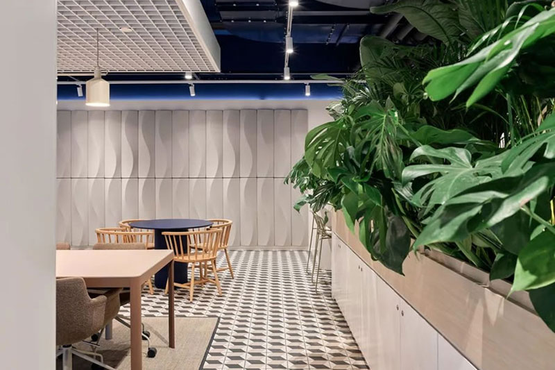 开放协作、动静相容、灵活多元(宁静的工作区、舒适的休闲区、开敞多元的社交区和协作区),建立在ABW基础上的超强适应性空间规划支持人们多样化的工作需求。简约温馨的配色,加以韵律感的元素重复应用,以及随处可见的大量绿色植物,让整个空间在恬静温婉中又洋溢着灵动的韵致。