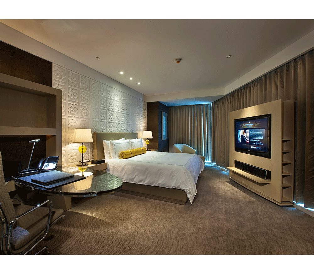 今天给大家分享是一个大型的酒店装修设计案例,该酒店拥有 533 间豪华客房和套房,秉承酒店一贯的设计理念——简约奢华.其中包括 25 间行政套房、 3 间复式套房、 1 间洲际套房及 2 间总统套房.此外,独栋的行政楼内设有豪华宽敞的俱乐部酒廊,配套设施一应俱全.