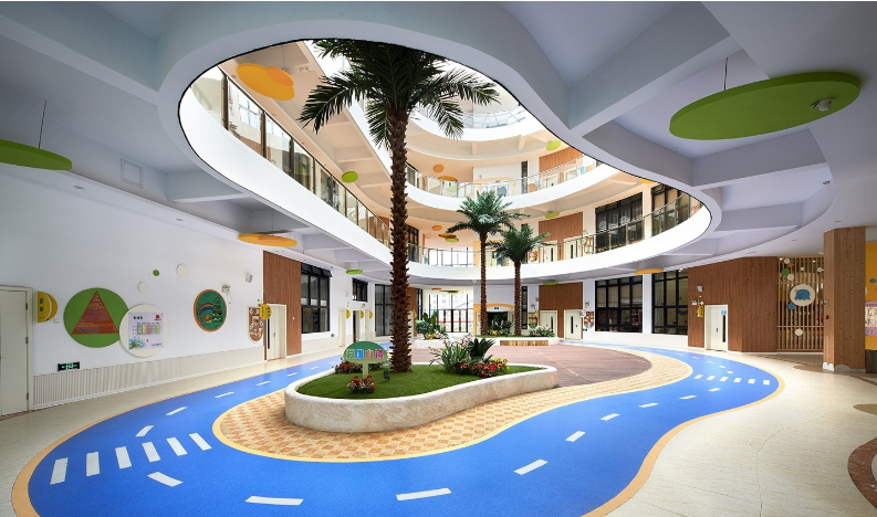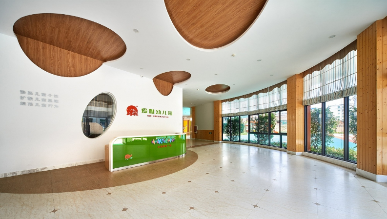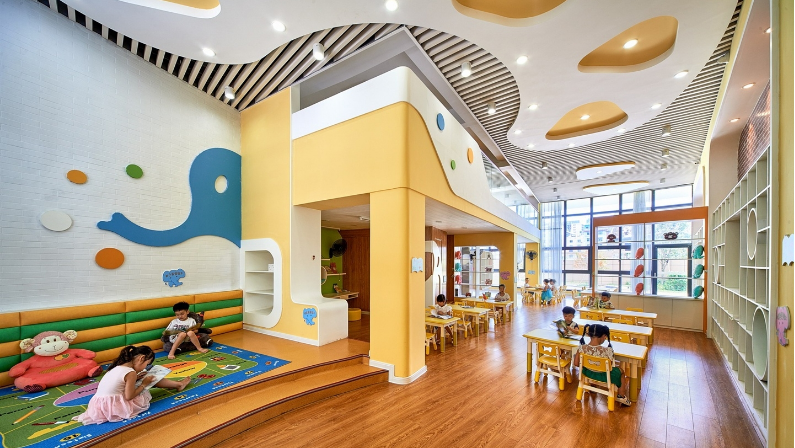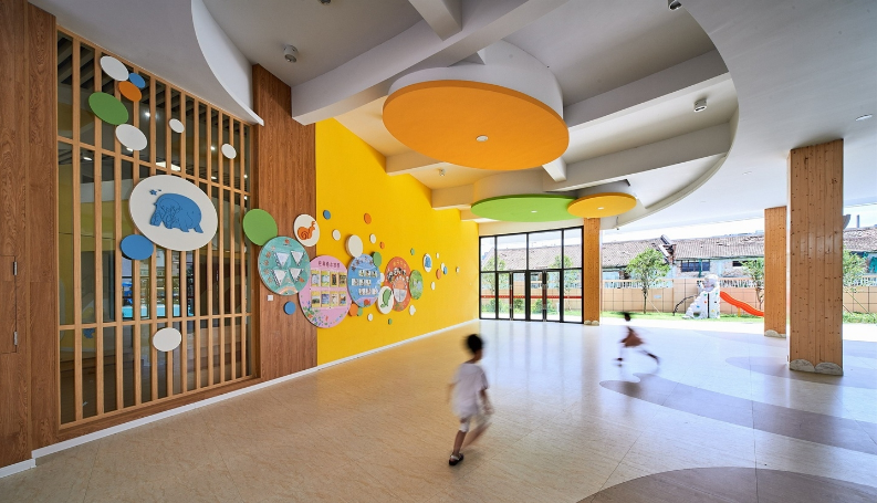这是一所回归自然社会、充满趣味和学习元素的幼儿园环境,设计师将教育内涵融入空间,让幼儿玩中学、学中玩,以空间促发展,体现设计的价值.
