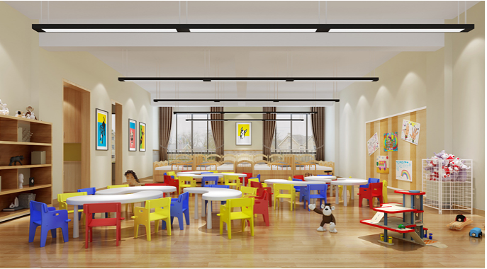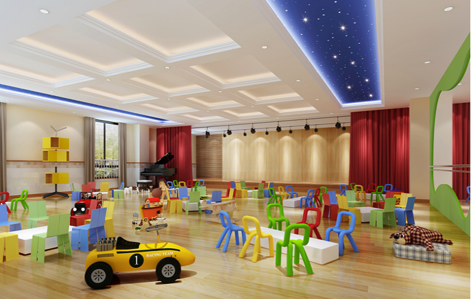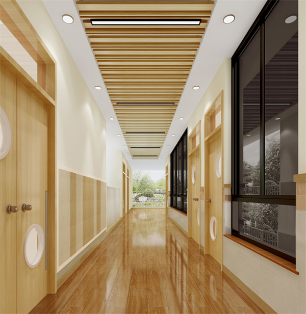 由于线条简单、装饰元素少,现代简约需要软装来配合。如沙发与玩具等。软装到位是现代粉饰的关键。多功能的个性空间功能与空间组织,主要以木色为主,没有太重,太跳的的颜色。以简洁的造型和别出心裁的摆放,打造温馨,优质的幼儿园环境。