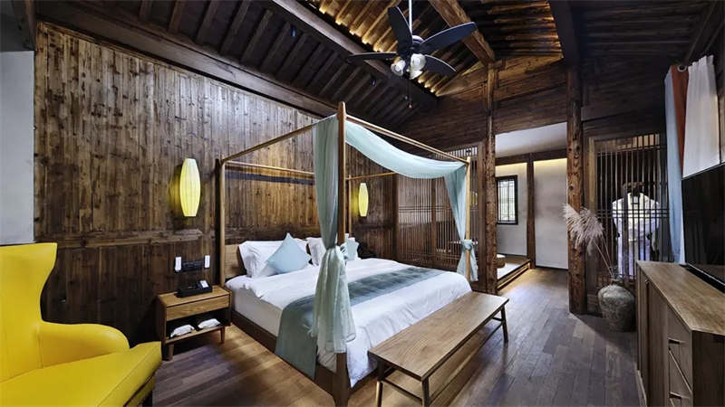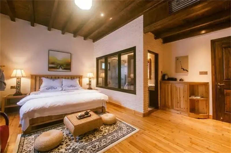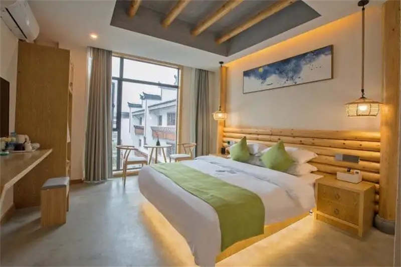 仿旧家具和艺术品的配置,也使卧室更加了时代感,总之黄山民宿设计就是化腐朽为神奇,在怀旧朴实中体现典雅的空间气质。使整个室内空间基调散发着简约雅致的气质。多种风格主题的客房空间,通过巧妙地构思,将更多具有现代艺术质感的装饰融合到黄山民宿设计空间中,从而提升民宿所表现的艺术境界。时尚简约风的黄山民宿设计,会更容易得到年轻人的喜爱,整体简洁大方。