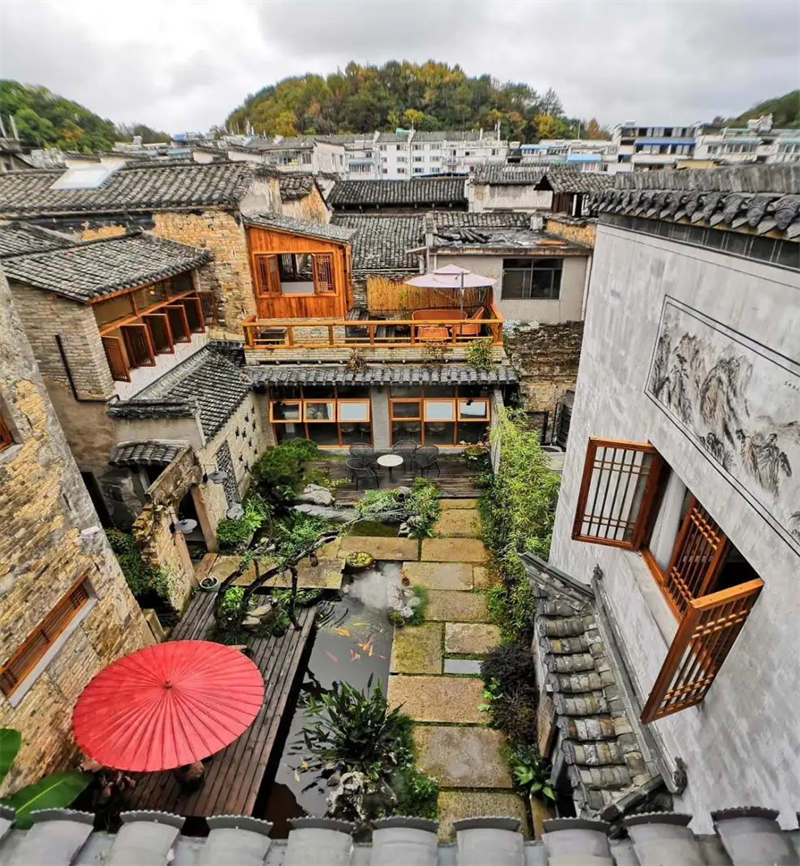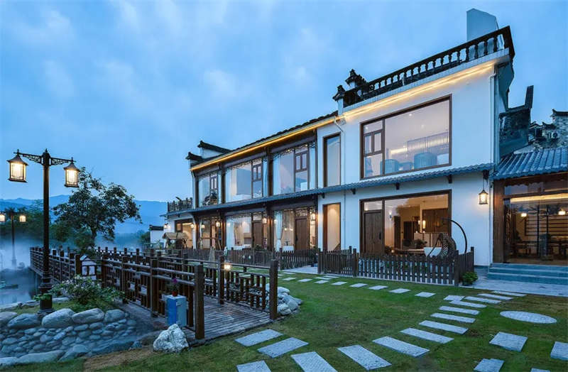 安徽黄山民宿设计在整体空间的把控上,色彩、架构、家具陈设力求统一浑然,木饰配合精选的现代装饰主义陈设系统,分别以新中式、复古,北欧等风格为基调,搭配简约现代的空间来表现,终形成了既大相径庭又和谐统一的客房装修方案,并为业主创造了良好的经营成果。