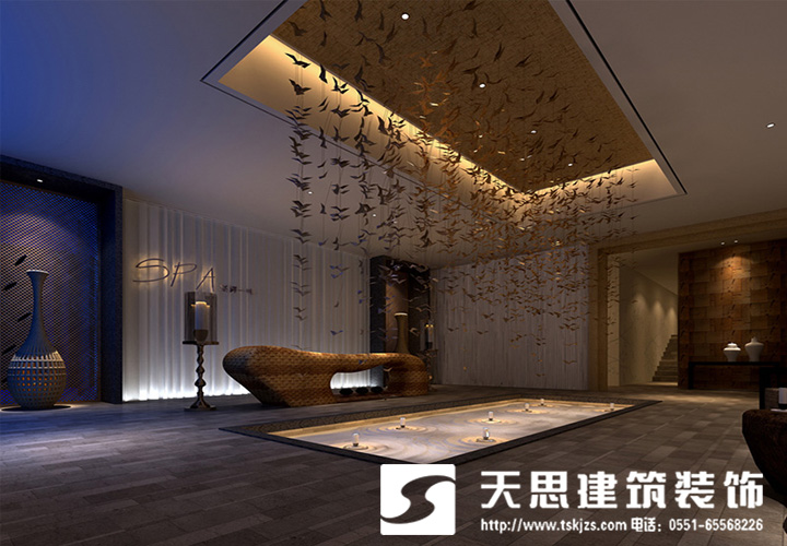 六安澜庭养生会所采用简约现代风格。养生会所大厅一座异形的艺术品,独特时尚,一倾而泄的水晶灯,在荷花屏风的映衬下,高贵自然,富有艺术感。洽谈区、接待区的装修设计没有采用过多的装饰,局部的深褐色吊顶以及墙体,突出了养生会所的独特之道。整个养生会所的软装搭配也是恰到好处,体现了养生环保之意。装修设计休闲自然,是放松娱乐的不错之选。