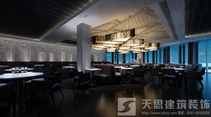 总设计说明:本案集餐厅和酒吧于一体,主题为树影婆娑,采用大量的直线和简单形体元素。给人的感觉是舒适、魅力、神秘、时尚、妩媚。