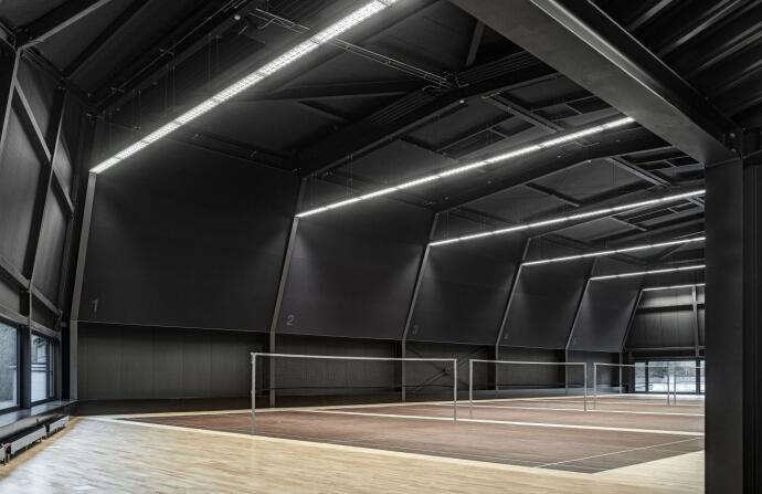 总的来说,在羽毛球馆设计中,要充分利用自然光,使运动员能够准确判断球、高、落点,不要让太强的光线直接照射眼睛或反射眼睛上。