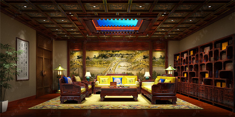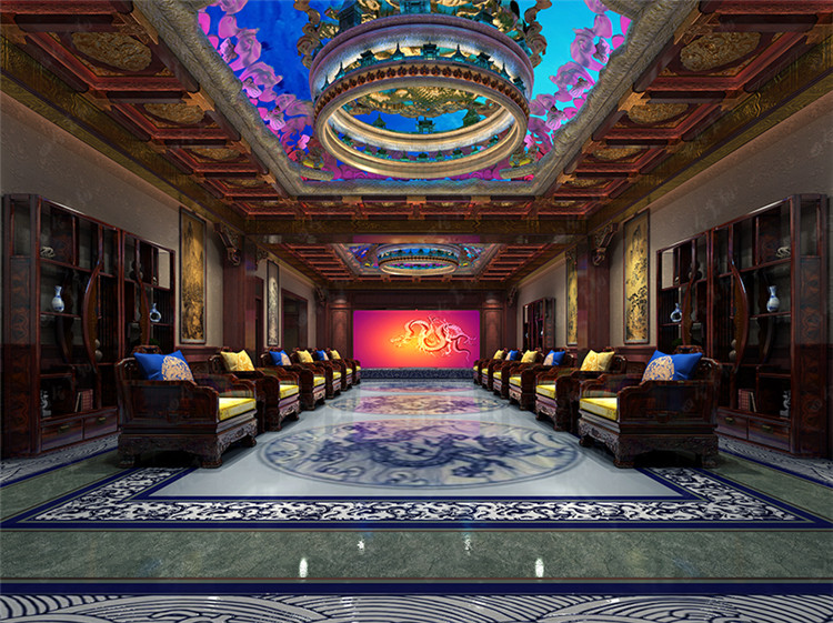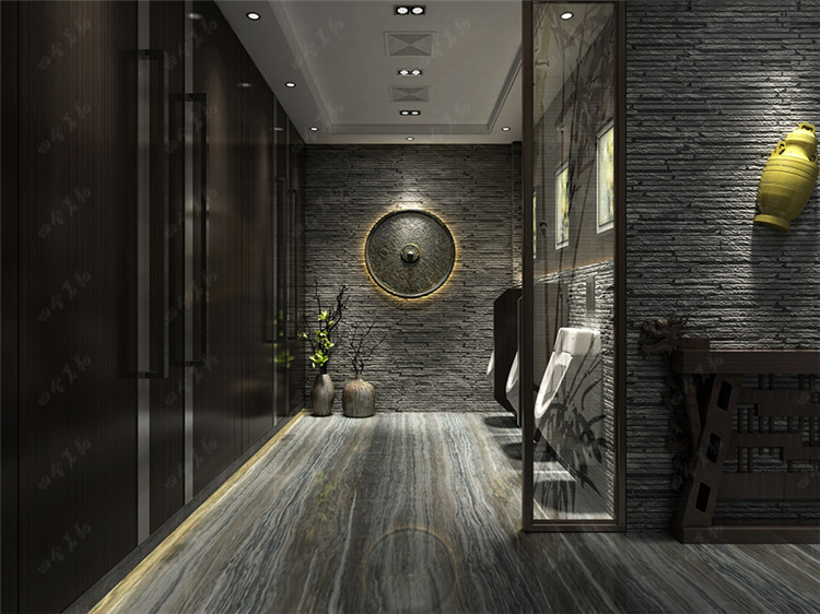 为表现中式传统大宅的精髓,将中国传统疏、密、隔、透的造园手法引入会所空间,整合空间秩序,把握空间节奏,使之开合有序,进退自如.丰富的空间层次递进,横向通透、纵向通达,体现出"中正平和"的东方哲学思想.