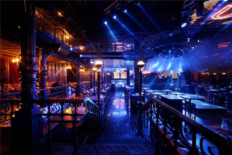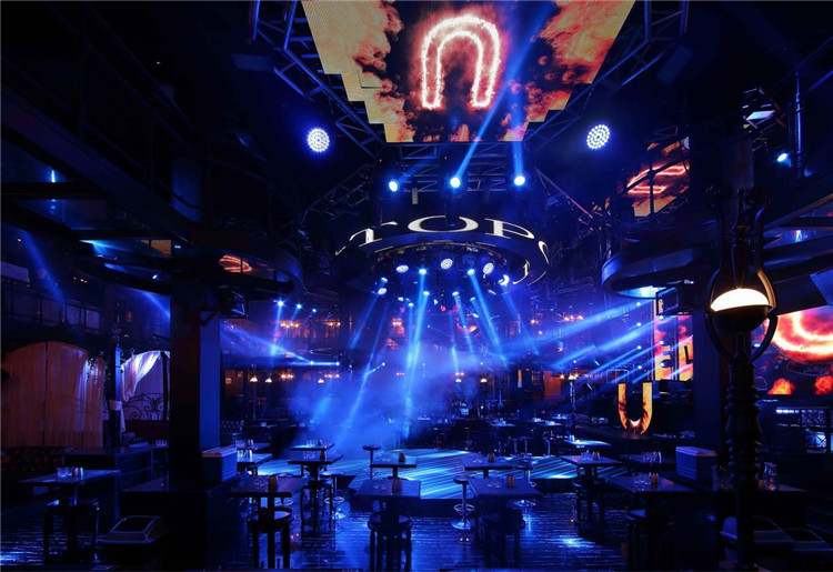 大厅空间布局采用上下阁楼的形式,中空的大厅中央设置可升降舞台,周边舞池里摆放着散座桌椅,三三两两的朋友可以在此喝酒聊天、跳舞、观看表演,天花对应舞台中央设置环形LED光环,高科技智能控制灯架,随着音乐上下伸缩的时候,让人产生三级错落的视觉效果,整个空间都动起来了!大厅四面还搭配了大面积的智能控制翻转灯翅,全方位配合,使整个空间更饱满、活跃.
