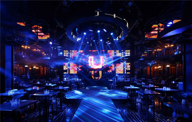 主舞台背景为整面的LED智能大屏,配合音乐播放时下最潮流动感的画面,正前方"U"字形DJ台,结合创意灯光效果,更显热血酷炫.两侧对称的空中秀廊是设计的一大亮点,透明的走廊,舞者可以在上面尽情舞动,360度全方位展现自己的舞姿.