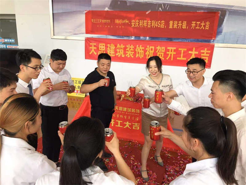 2022年7月13日,由天思装饰承接的安庆利祥吉利4S店装修开工啦!这是安徽天思装饰本月第5个开工项目,也是本司承接的又一个4S店类办公项目的装修工程。在此,安徽天思装饰全体员工恭祝安庆利祥吉利4S店装修工程开工大吉!