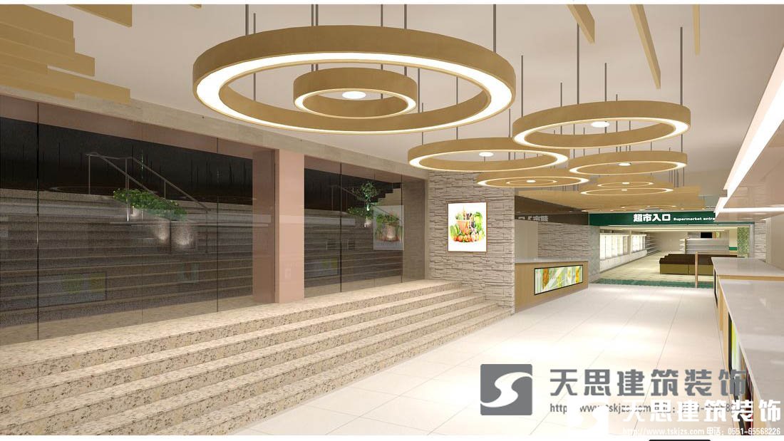 超市入口设计一定要便于顾客出入,不致造成阻塞、拥挤,又能有效地利用商店面积。出入口设计原则是超市门面装修设计原则的首要点(重点)。