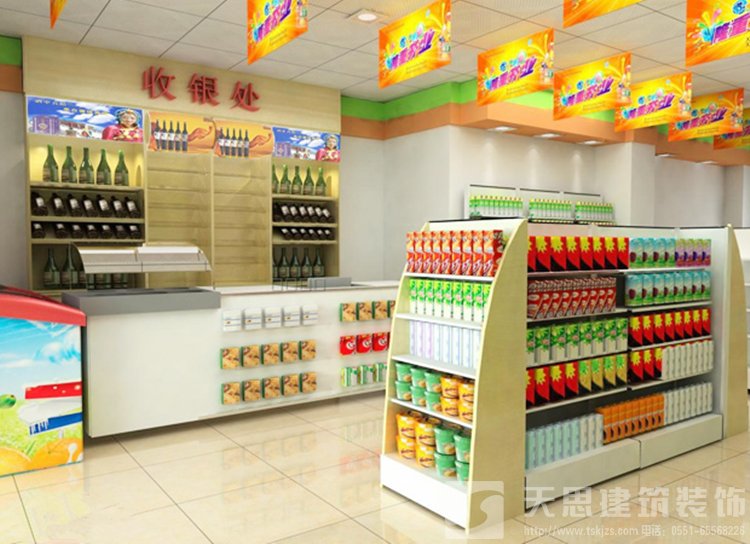 便利店的装潢效果应该最有效地突出商品的特色。装潢不宜采用丰富、鲜艳的色彩,不要让装潢的色调来分散顾客对商品的视觉注意力,最好是天、地、墙都采用反光性、衬托性强的纯