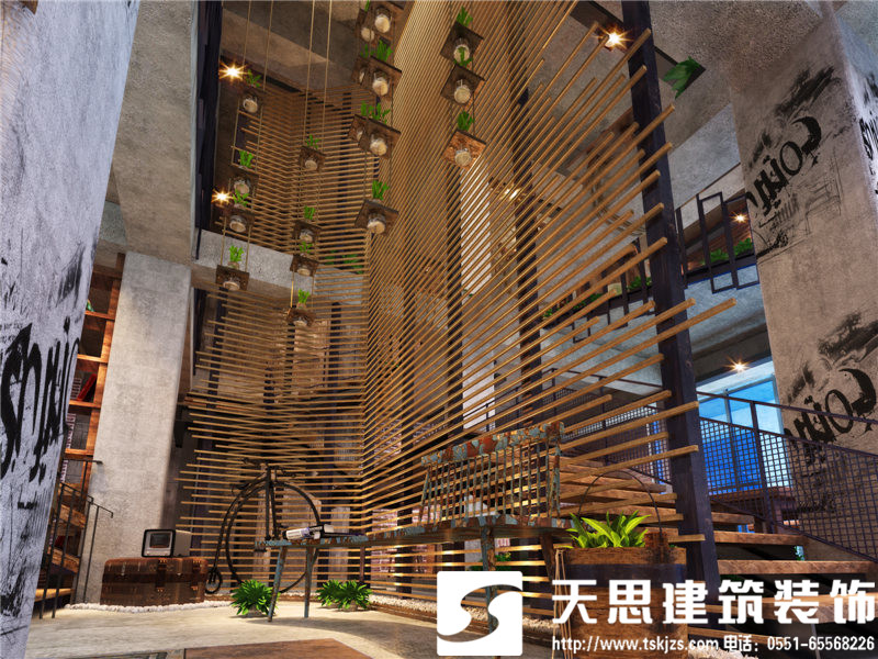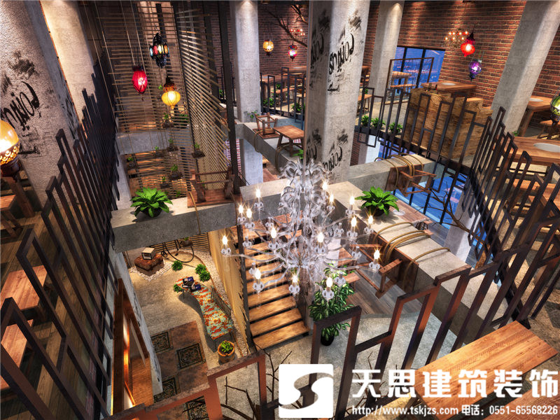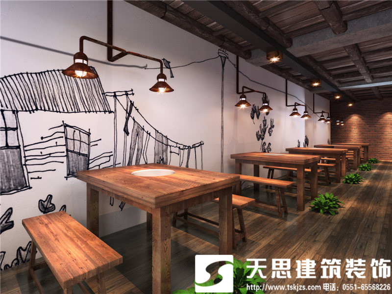 楼梯一角的别致风景,虽材质简陋却颇为入得人心。小板凳吧台式火锅店,在把握简单大方的设计基础上,巧用新颖造型和空间氛围营造,打造出一个别具味道的火锅店。