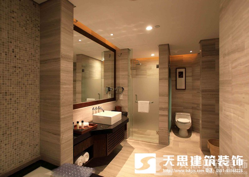 要做到干湿分离,最基本的做法是整体浴室或者是墙体隔离、玻璃隔离方法,都将增加一笔开支。而普通的酒店都是采用未隔离或半隔离的做法,地面也未增加其它的拦水措施,成本非常低廉。