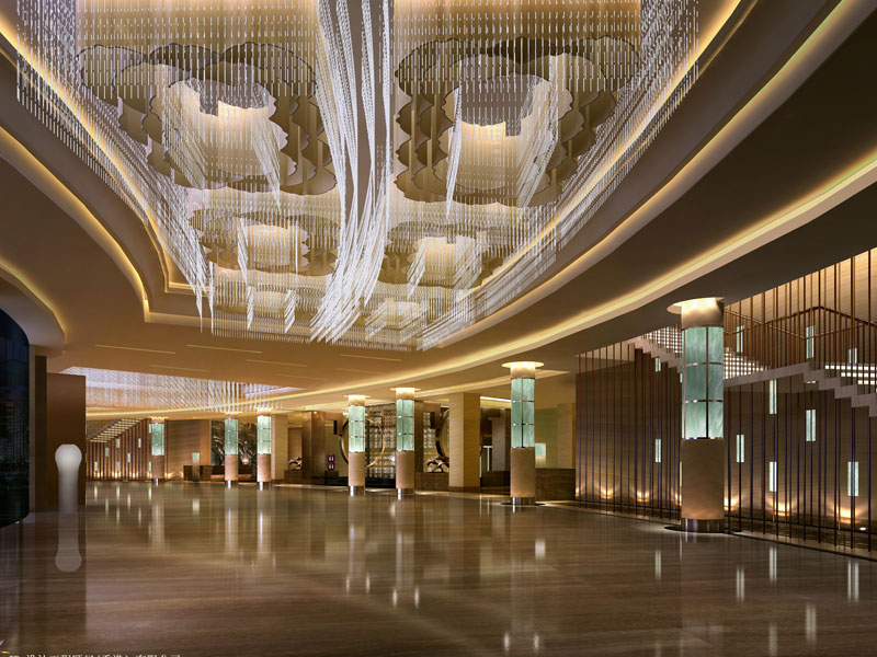 根据酒店室内其功能分区的不同,大堂设计的类型也不仅仅只有一种。其中一些大堂通道也许会通往商店区、餐饮区、会议区等各类型功能空间,甚至也有可能通往与之设计风格截然不同的各种商业区,尤其是某些设计个性鲜明的空间。显然在这种形式下,大堂已然成为了这些多元空间相互碰撞、相互协调的消化体。巧妙的大堂设计,使建筑外部环境以及室内各空间融合成一个集满足功能需求、造型艺术美感于一身的多元体,达到把简单的“多样性”归纳为多元的"统一性”的目的。