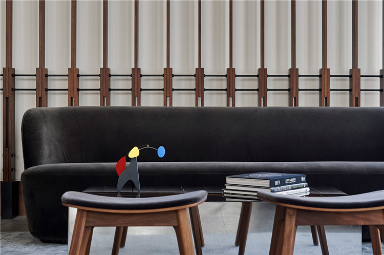 餐厅位于大堂旁边,由木条幕墙隔开,而不是墙壁,目的是鼓励人们在两个空间之间自由移动。“当你走进大堂时,你会注意到餐厅空间和大堂区域之间的无缝,我们希望人们全天都能有效地利用这个空间,这样你就不会觉得自己被封闭在一个特定的区域里。”