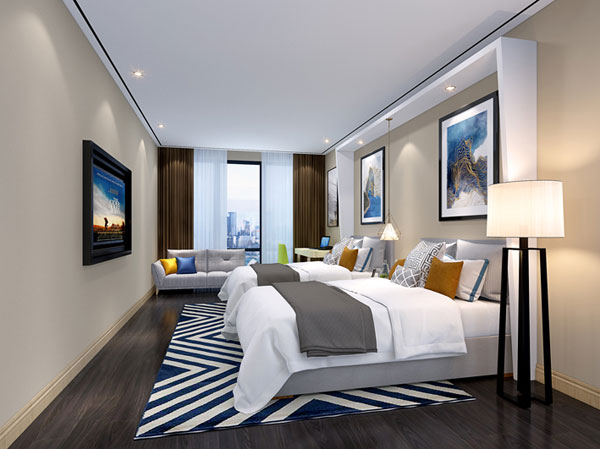 1、建筑面积:40-50平方米/每间客房(包括公摊、公共、后勤面积)。