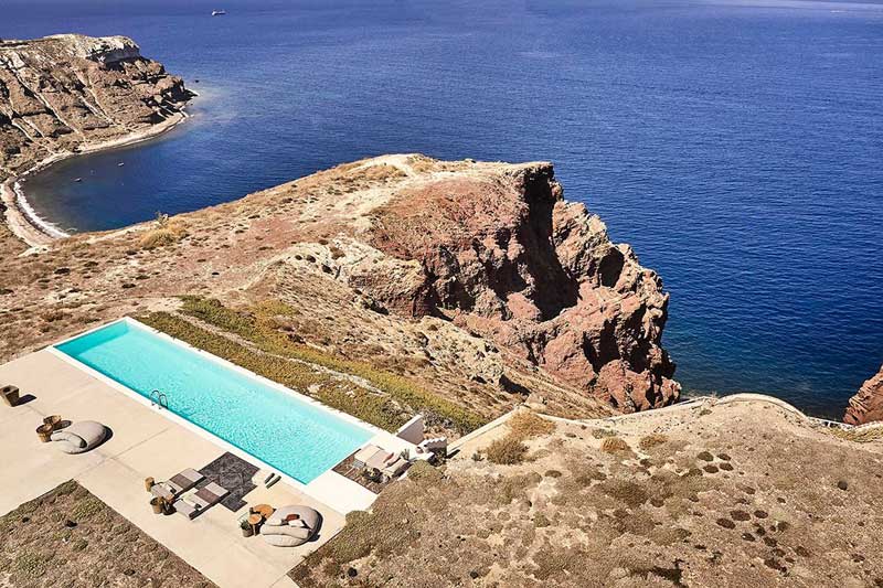 自然生态度假酒店坐落在圣托里尼岛新月形状的悬崖边上,预计于今年5月初开放。在阿克罗蒂里古城附近,游客可以看到来自破火山口附近的碧蓝海水和斑斓陡峭的熔岩层。这片建筑所带来的与人类密切相关的体验,进一步点亮了周边未经雕琢的自然世界。复古饰品、大地色调和手工家具装点了酒店的15间套房,笔直的线条、圣洁的白色与灵活的曲线等典型的圣托里尼建筑元素也在酒店中得以充分展现。在这里,人们可以尽享奢华的希腊式住宿,品尝当地精致菜肴,感受栖于悬崖边的全景泳池,在户外社交中心参加各种有益身心的活动。