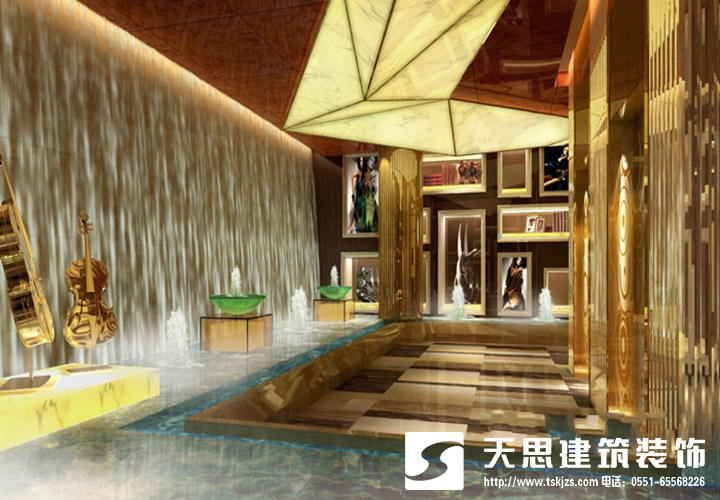 首先,KTV装修设计大厅是非常重要的,消费者进来第一眼看到的是它,所谓第一印象非常重要。大厅设计要宽敞明亮,可以摆放一些桌椅作为休息等待区。比如说预约了包间顾客提前来了,可以稍微等待下。大厅要选用容易清洗的材质来装饰,地面与墙壁的配搭建议采用灰黑色系且带有图案的材质。这样显得大厅空间宽敞些有立体感,整体的装修设计要以顾客的感受为主,让顾客能体验到舒适感。