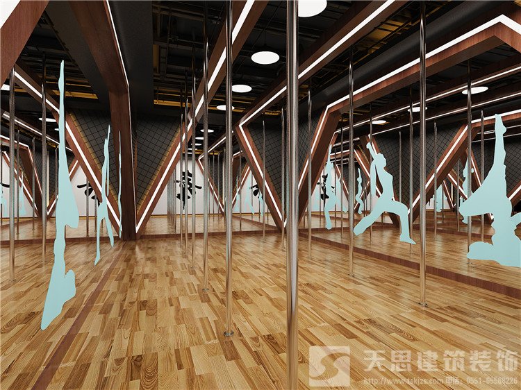 墙面设计使用镜面装修比较好一点,这样能即能增加客户视觉上的体验效果,还能让健身会所看起来特别宽敞。