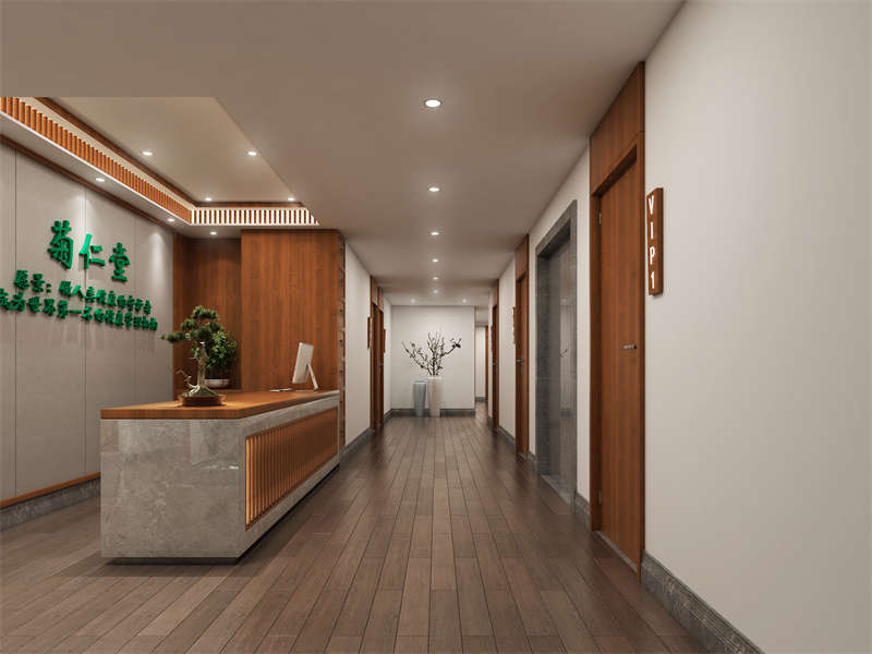 中医馆接待大厅设计,讲究古朴醇厚,可将水景融入,把诗意的意境描摹发散,给人一种暖香富贵之味。