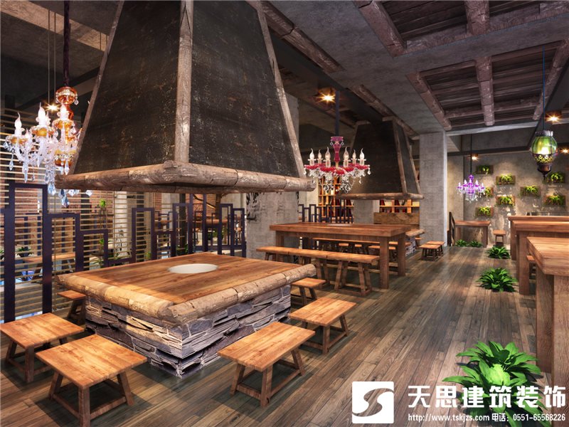 从整个火锅店设计空间上分析,火锅店的户型是属于长方形的,户型的中间正好有一排承重柱,那么从人的心理上来讲,需要的是火锅店的人气,一进入火锅店设计需要感受的是一种生意红火的氛围,所以很多餐饮项目都将散座区设立在入口的位置,或者是靠窗的位置。那么本案的火锅店呢,同样将散座区设在火锅店的入口处。火锅店的散座区需要根据散座区要求容纳人数来定,整个火锅店散座区需要容纳100人左右,那么我们就需要分析火锅店是用四人桌还是六人桌,方桌还是圆桌。首先根据火锅店消费者的习惯来看,是以4人居多,那么火锅店设计的散座区四人桌居多。从火锅店装修的户型上来看,是一个长方形,再结合占地面积及桌椅的预算。我们选用了方桌,靠墙主题火锅店四人桌桌子的规格是800*1500,桌子与桌子之间的间隔是1米4左右,这样的距离主要是为了放置卡座。这样规格的桌子既可以坐4人,也可以坐6人,火锅店设计使用卡座使人更加放松,更加休闲的,即使多一两位顾客也能够坐下。