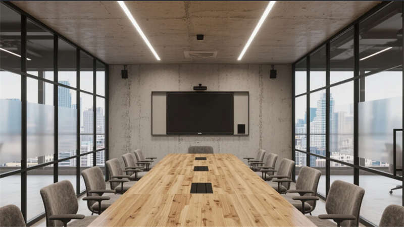 设计从本土气质中汲取灵感:图书角的阶梯书屋如皖北梯田般层叠上升,生态休闲区的苔藓墙面呼应淮北平原的绿意,竹木色调贯穿始终,在工业框架中注入自然呼吸感。创意沙龙区采用可重组家具,鼓励思维碰撞;而半透明的会议室隔断则隐喻开放沟通的企业精神。