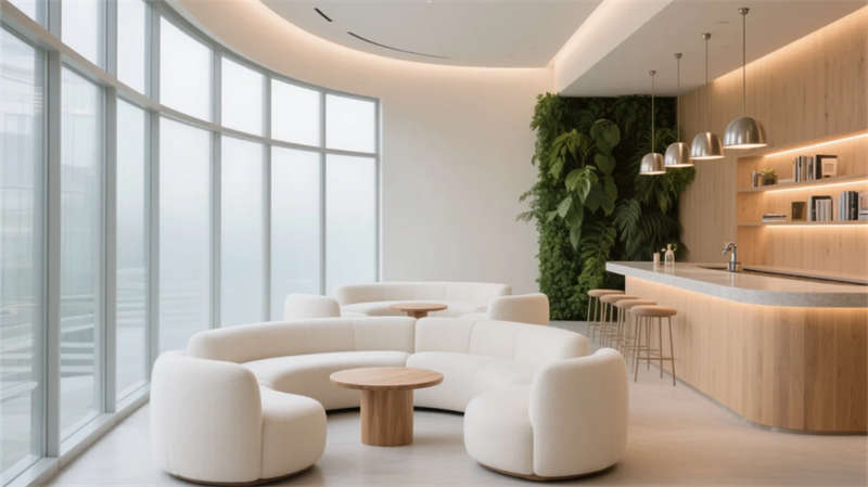 在宿州这座蓬勃发展的城市,我们以“自然与人文共生”为核心理念,打造了一座现代办公空间。设计融合了简约美学与生态元素,浅木色调与绿植贯穿始终,营造出清新舒缓的环境。开放式区域采用通透玻璃隔断,最大化引入自然光线,搭配弧形线条家具,弱化办公的冷硬感;独立空间则注重私密与静谧,绿植墙与哑光材质平衡了高效与放松的需求。