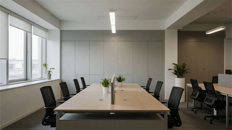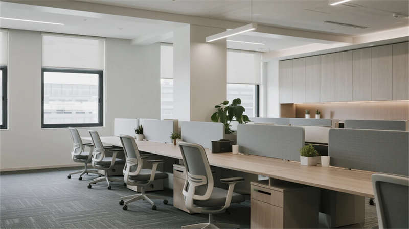 在现代简约风格的引领下,该办公空间以开放性和人文关怀为核心,打造了一个流畅而高效的日常工作环境。整体设计强调视觉统一性,通过浅色调的墙面与地板、简洁的家具线条以及自然元素的融入,营造出宁静而专业的氛围。功能区之间无缝衔接,例如协作区与开放式办公区通过绿植和智能灯光形成自然过渡,确保团队互动的同时兼顾个人专注需求。休息茶水区则以温馨的布局促进员工放松,而创意工坊区则激发创新思维,多功能活动区则支持多样化的工作模式。