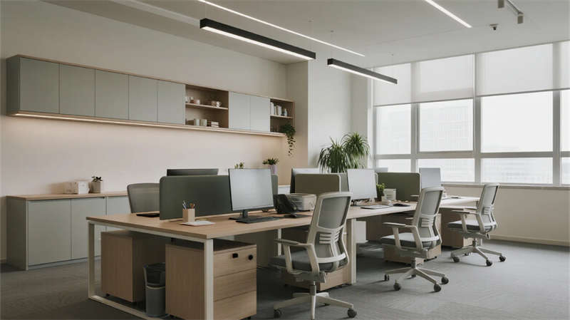 设计中注重舒适与可持续性,大量运用自然光和绿植,不仅提升空间活力,还呼应了生态友好的理念。智能照明系统根据不同时段调节亮度,强化了现代感。整体空间布局灵活,避免了僵化分区,使办公体验更具人性化。该方案旨在为使用者提供一个激发创造力、促进协作的理想场所,每一处细节都体现了简约而不简单的美学追求,让日常工作充满活力与归属感。