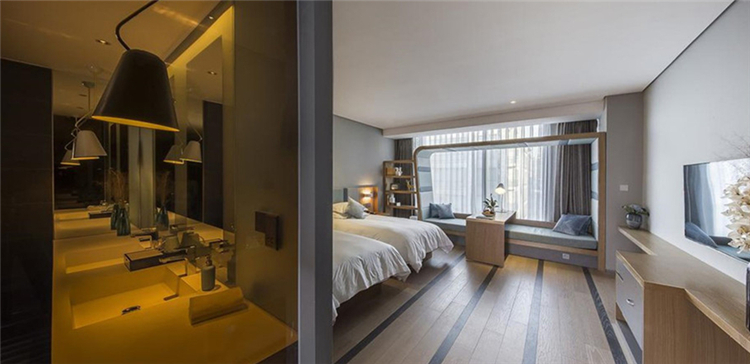 本酒店设计注重居室空间的布局与使用功能的完美结合,以简洁而不简单的造型、不繁重无过多的装饰来装点空间,强调形态与物件的单一性、抽象性,使整体环境更显舒适大气。空间简约的同时,色彩就要跳跃出来,通过大量高纯度色彩的运用,灵活而又大胆,不单是对现代风格的遵循,也是个性的展示,从而打造出一个格调高雅、与众不同的酒店空间。