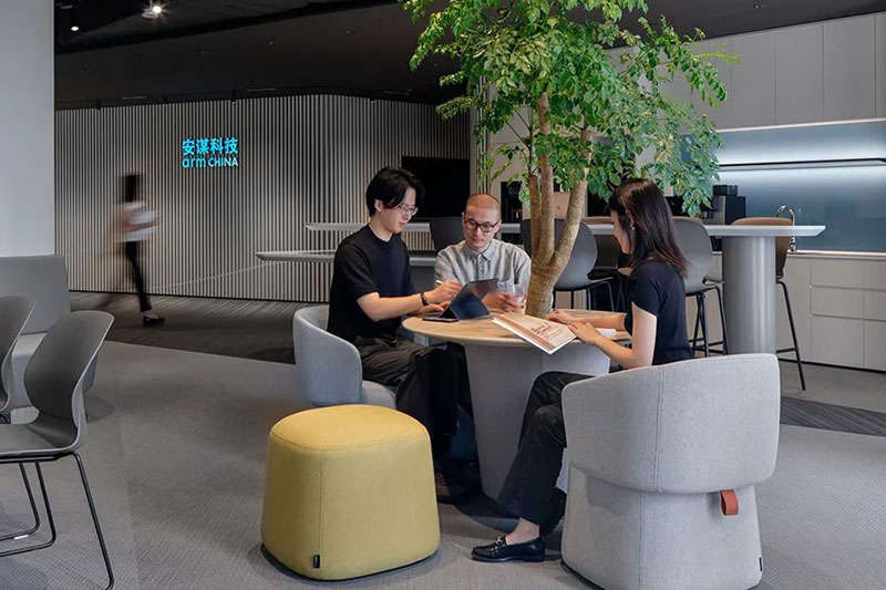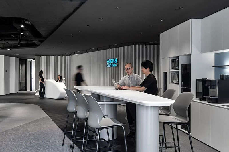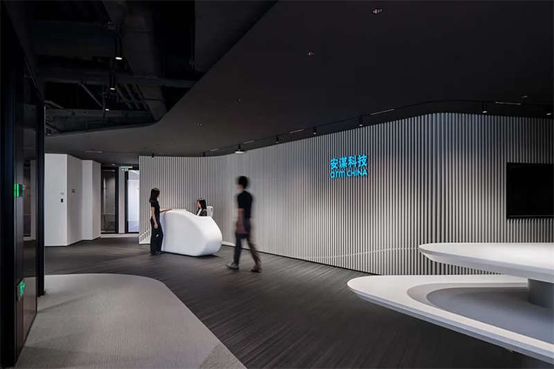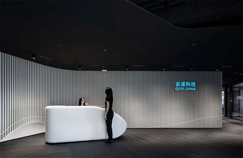 设计过程中也不乏挑战:如何在空间设计中显示出Arm China 特有DNA以及未来办公的前瞻性?一工团队为此做了充分调研,成为智能计算生态的领航者,这是Arm的一个企业愿景,我们同时理解了Arm最新的VI转型设计。设计师把此次项目当作一颗未来的种子,以点破面,将Arm的员工当作未来的种子和探索者。在空间中用动线、机理和光和设计手法引导来访者在新的办公空间朝向往的方向生长。