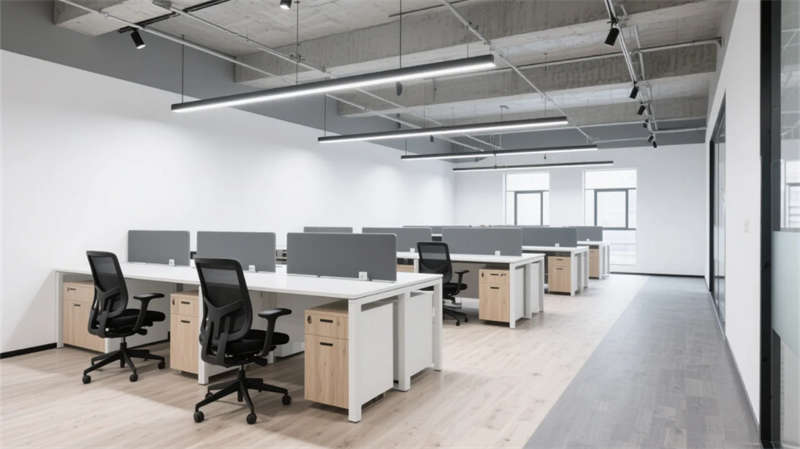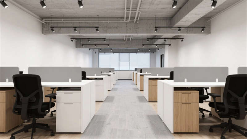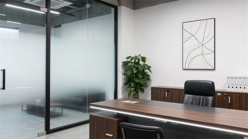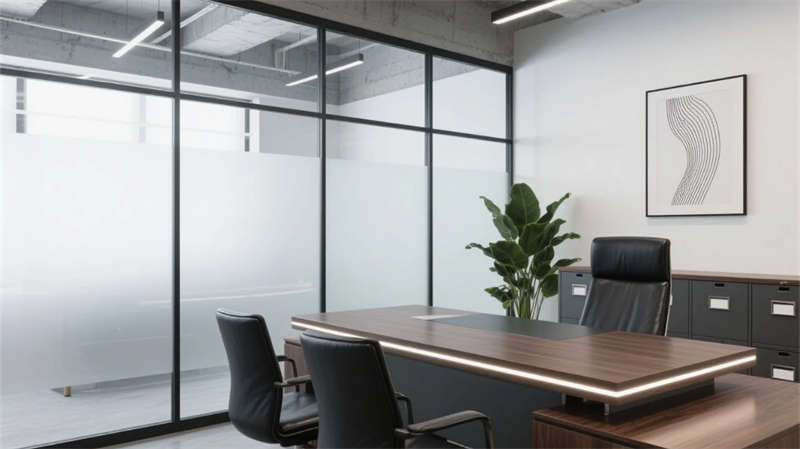 步入空间,现代简约工业风以原始肌理与智能元素碰撞出独特韵律。浅灰水泥与原木的基调贯穿始终,裸露结构构件与暖光线性照明形成张力,绿植垂直装置在冷峻材质中注入自然呼吸感。开放式办公区模块化桌椅灵活组合,落地窗引入天光,轨道射灯精准聚焦高效场景;独立办公室的磨砂玻璃隔断兼顾隐私与通透,深胡桃木桌面沉淀商务气质。