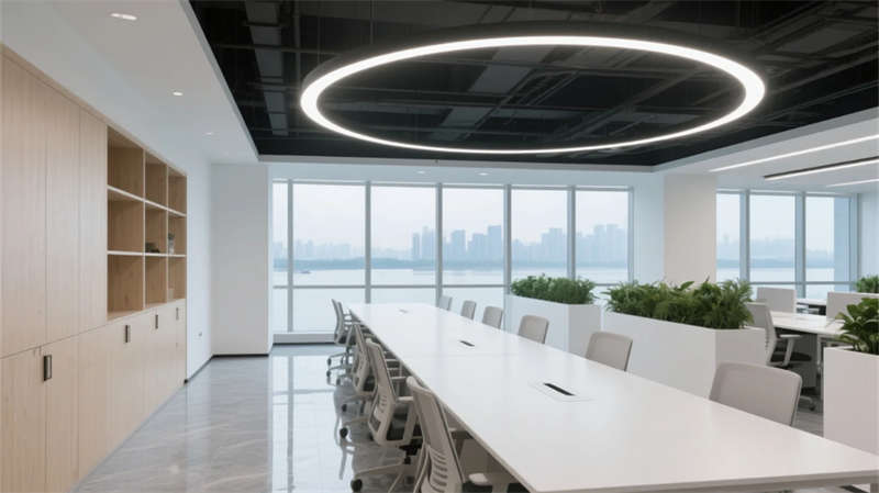 整体以流动的线条与光引导行为,既满足智慧办公的高效需求,又通过江城元素的精神投射,营造归属感与灵感持续生长的能量场。