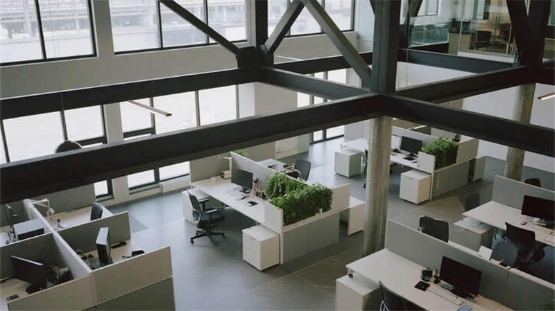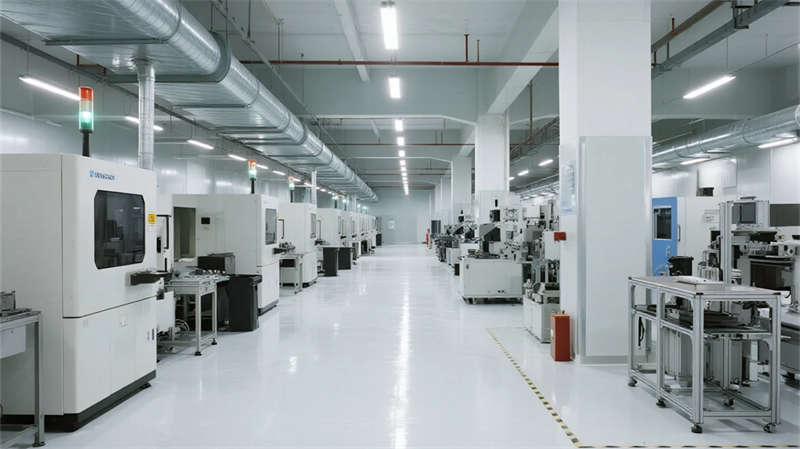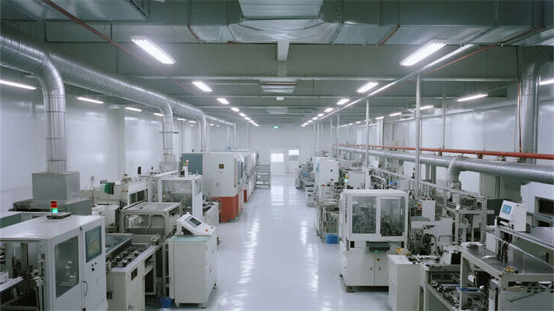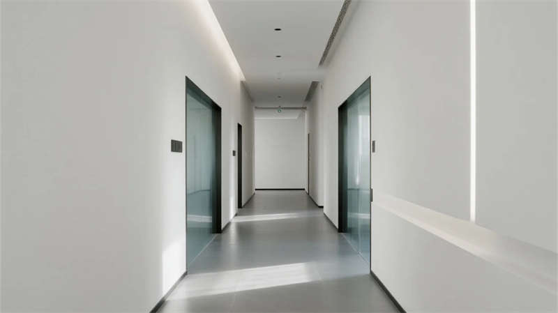 内部空间延续"少即是多"哲学:生产车间以银白为主调,设备管线规整排布于顶棚,环氧地坪反射线性灯光,营造科技感十足的无尘环境;办公区突破传统隔断,玻璃幕墙引入外部景观,绿植墙自然划分区域,形成通透开放的协作场域。