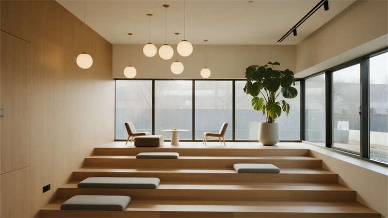 人性化细节贯穿始终——阶梯休息区木色台阶软化空间硬度,球形灯组如悬浮星辰;走廊通过精准的光带设计,将功能通道转化为光影艺术长廊;会议室电子玻璃白板与磁吸灯光系统,则体现智能与极简的融合。项目扎根芜湖工业土壤,以克制的设计语言实现工业建筑的功能升维,让理性空间焕发静谧诗意,成为现代制造美学的实体宣言。