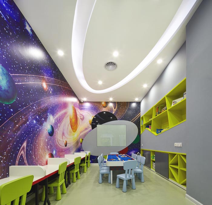 在本次设计中设计师设计了色彩斑斓的城堡故事,设计了绚丽多彩的节日派对,设计了童趣十足的运动空间,设计了充满文艺色彩的教学环境,为孩子打造一个高品质的童年体验,提升孩子全方位的能力。