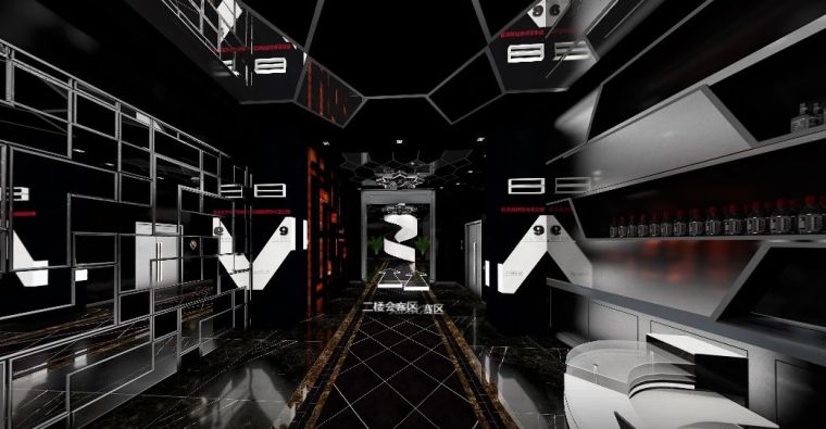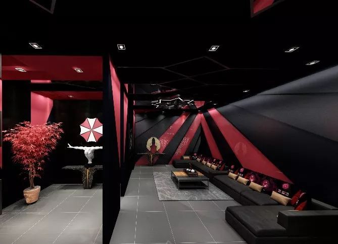 俗话说,气氛不能输,一个气场极强的电竞会馆绝对可以让玩家、选手释放个人最大战斗力,分泌更多的肾上腺素进入暴走状态。本次案例整体设计上走的是现代前卫风,以黑色为主色调猩红色为辅,搭配空间感十足的灯光和炫酷的装饰元素,紧紧扣合“红蜘蛛”的品牌主题,同时非常凸显时尚特色,符合消费群体定位。
