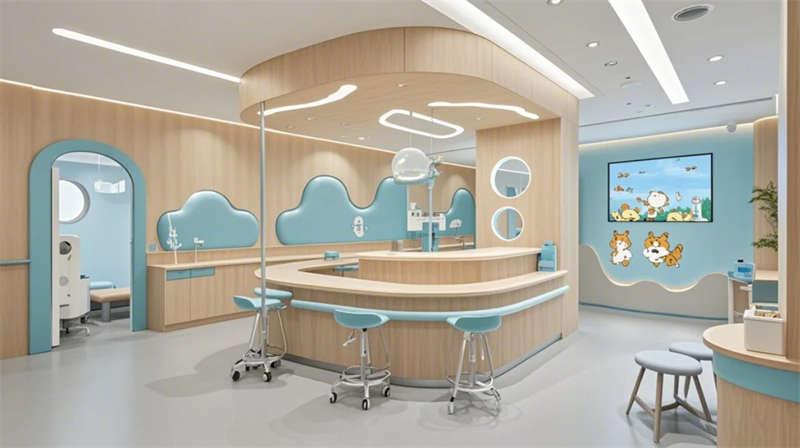本套方案以"疗愈型医疗空间"为核心理念,打造4500㎡现代简约医疗综合体。设计采用浅木色与医疗蓝的经典搭配,通过流线型空间架构与模块化功能分区,实现医疗专业性与人文关怀的有机融合。
