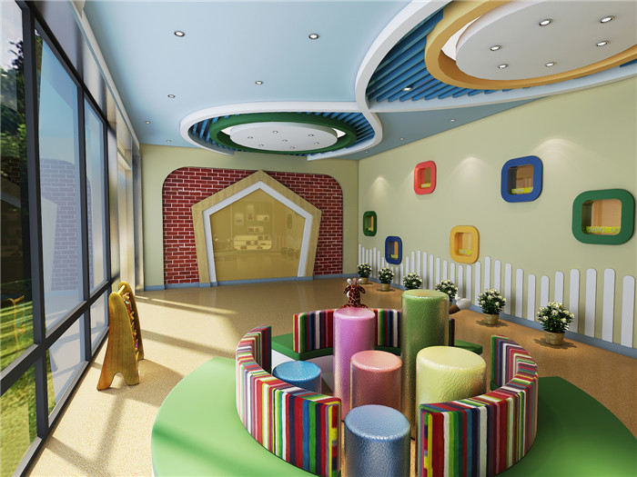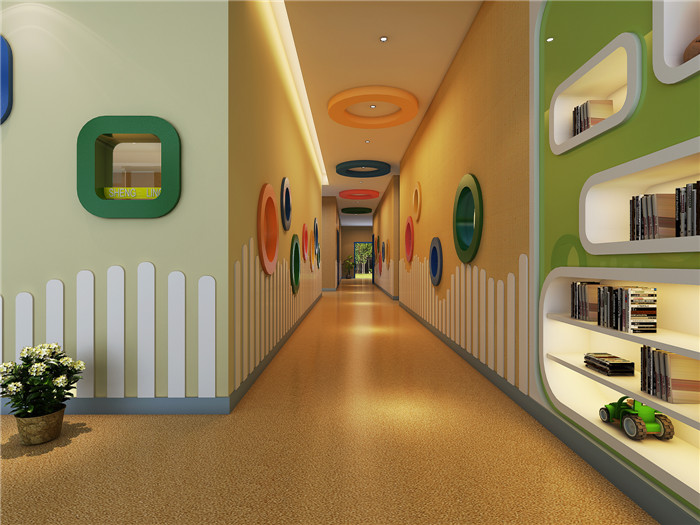 设计简介:本项目位于合肥市瑶海区的文一幼儿园,采用清新亮丽的现代设计,宽敞的室内空间和五彩的搭配让幼儿园大厅亮丽却不混乱。教室采用明亮的米黄色为背景,室内的桌椅及装饰均为孩子喜欢的彩色,对孩子的性格和智力开发有着良好的引导作用。走廊是狭长矩形,充分利用空间的现有条件,体现文化氛围的同时,增加区域设计,提高孩子的安全意识。