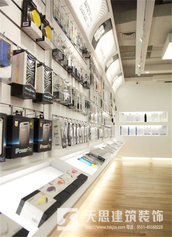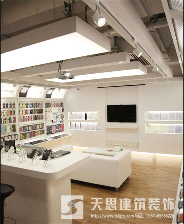 该展厅的照明设计中整体与重点相结,突出展品。照明部分采用暗藏的灯光设计,结合软膜灯箱在呈现柔和光线的同时,更突出了展示商品。光影的变化,造型的虚实对比为静止的空间增添拉活跃的元素。整体线条简单利落。简洁明快的现代设计元素人性化的功能细节,营造一个突出细节、时尚简约的展示氛围。