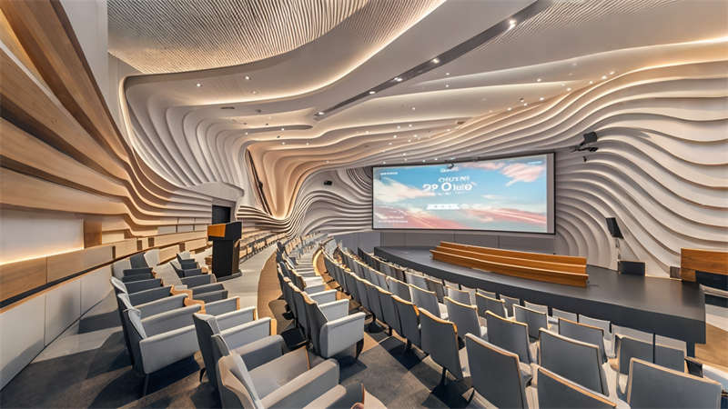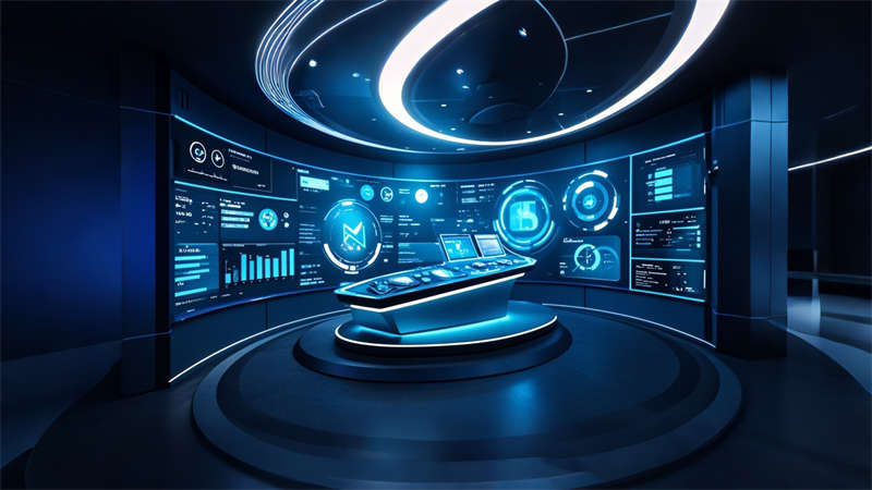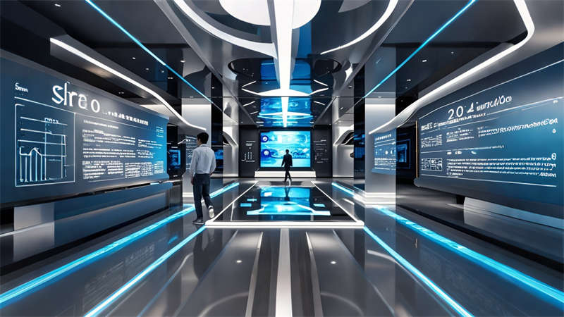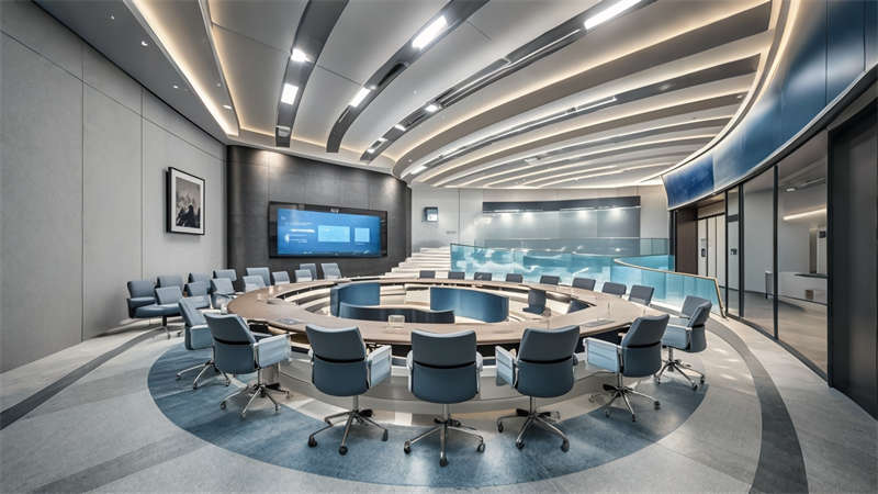 本 3000㎡办公楼展厅采用 ' 科技人文 ' 设计理念,以灰白色为基调,企业蓝为点缀色,打造现代简约风格。空间规划采用 ' 展办融合 ' 模式,前厅设置 10 米通高数字艺术墙,产品区配置智能感应展台。办公区采用模块化家具系统,搭配声学处理隔断。动线设计运用环形参观路线,通过蓝色导视光带串联各功能区。材质选用哑光金属、木饰面与玻璃的混搭,科技感与温润感并重。照明系统采用 4000K 色温 LED 线性灯,重点区域搭配轨道射灯。智能中控系统集成环境调节、安防监控和数字展示功能,实现空间高效运营。绿植墙和透光软膜天花的设计,有效改善室内微气候。
