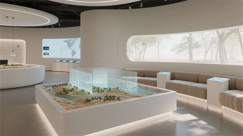 这座展厅以现代简约风格为核心,打造流畅而富有张力的空间体验。入口区以开放姿态迎接参观者,核心展示区陈列创新展品,互动区通过科技装置激发探索乐趣。多媒体区以视听盛宴强化叙事,休息区则提供舒适角落促进交流,会议区灵活多变适应多样需求。主题区巧妙融入本土特色,未来区以先锋设计点燃灵感火花。整体设计中,简洁线条与中性色调营造宁静基调,高科技元素如数字屏和智能照明无缝融入,增强功能性与艺术感。空间动线自然引导,从喧嚣到沉思,材质选用环保而温暖,绿植点缀平衡科技冷峻。展厅不仅服务于展示,更成为启发对话与思考的场所,每一功能区衔接紧密,共同编织一场关于未来的故事。在合肥这座活力之城,设计以包容姿态回应城市脉动,为公众带来沉浸式文化之旅。