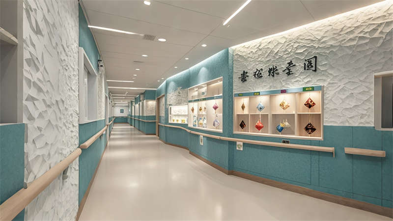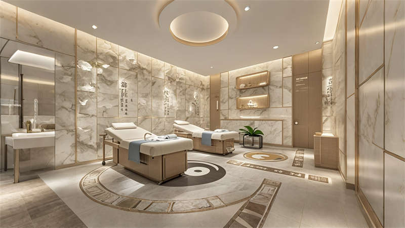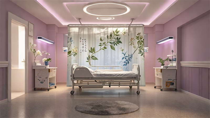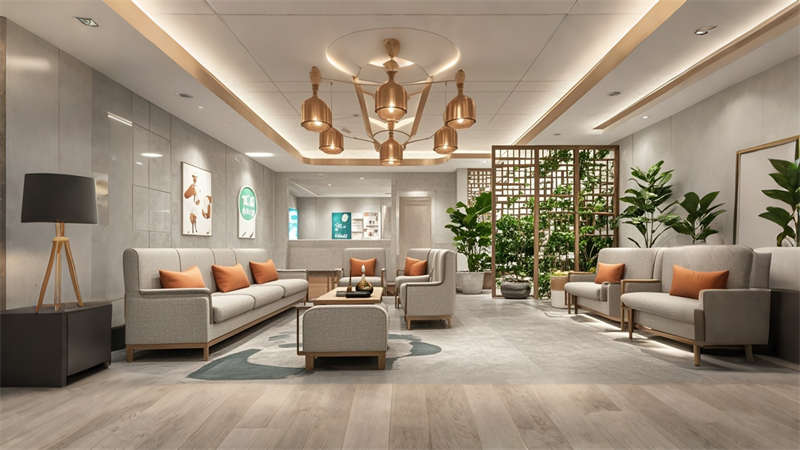 本2000平中医院设计融合传统中医文化与现代医疗功能,采用 ' 疗愈之境 ' 核心理念。空间规划采用 ' 回' 字形动线,门诊、诊疗、康复三大功能模块环绕中央庭院布局。色彩体系以米白、浅灰为基底,点缀赭石、黛青等传统中药色彩,墙面肌理漆模拟纸张质感呼应古籍文献。诊疗区域采用模块化隔断系统,兼顾隐私与通风需求。智能照明系统可模拟昼夜节律变化,候诊区座椅集成无线充电功能。重点区域设置 AR 中医文化互动装置,住院部走廊每 10 米设置中药香薰扩散点。材料选择注重环保性与耐久性,地面采用防菌 PVC 卷材,墙面使用易清洁的纳米涂层。整体设计通过现代设计语言诠释中医 ' 天人合一 ' 理念,打造兼具专业医疗功能与人文关怀的现代化中医院空间。