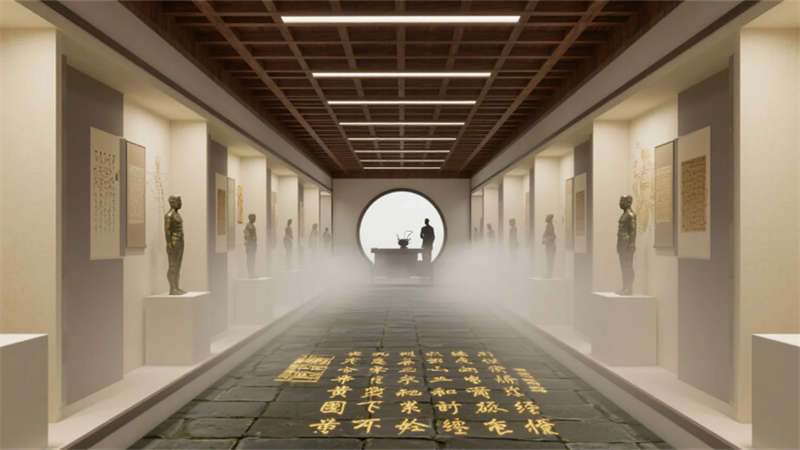 针灸室格栅隔断透出晨光竹影,经络图前银针泛着柔光;文化长廊地面流动篆书金句,引领视线穿透月洞门望向煎药铜锅升腾的薄雾。茶疗区古茶树畔,药汽氤氲于青花茶盏,百草浮雕墙下藤椅邀人小憩。