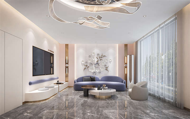 美容间,淡雅的色调与大面积留白,在视觉上体现出一种引导性和动感的体验,颇有动静怡然的空间气氛。